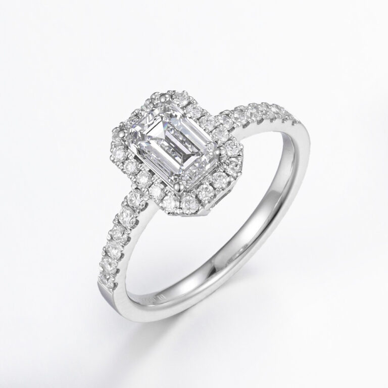 Emerald-Cut Halo Lab-Grown Diamond Engagement Ring iin 14K/18K White Gold, Yellow Gold, Rose Gold & Platinum(1ct)