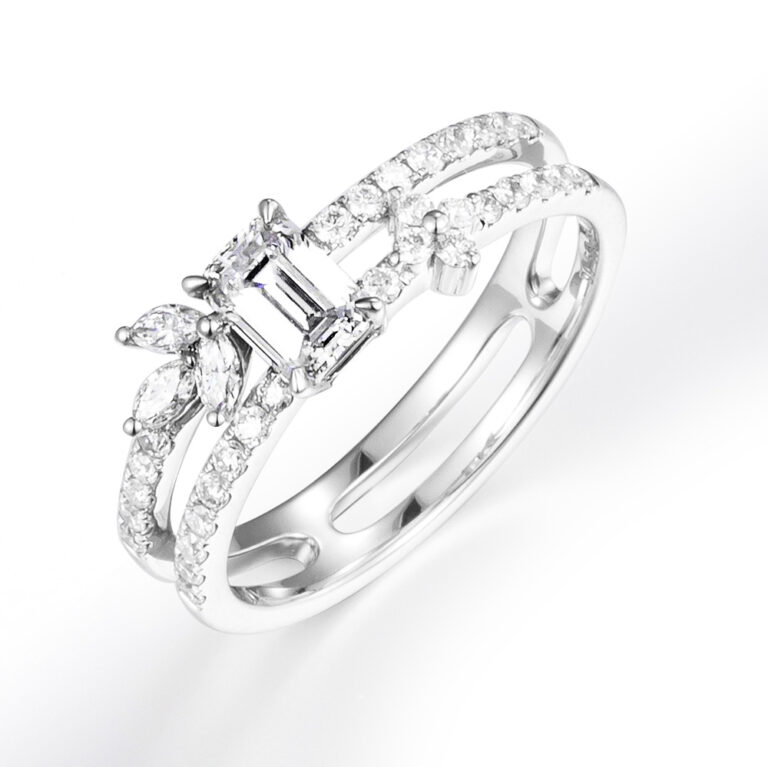 Emerald-Cut Double Band Laboratory Diamond Cluster Wedding Ring in 14K/18K White Gold, Yellow Gold, Rose Gold, and Platinum (0.55 ct)
