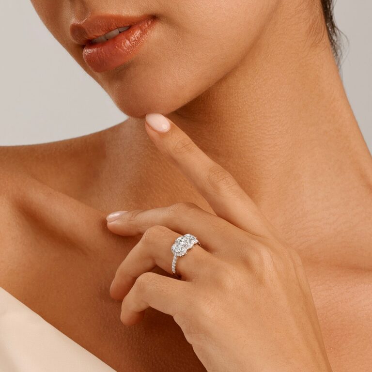 1-3carat oval lab-grown IGI certified diamond, set in an 18K white gold engagement ring