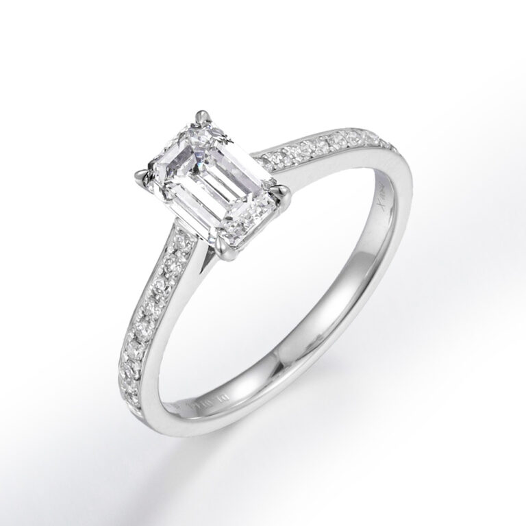 Lab-Grown Diamond Engagement Ring (1 ct or 2 ct) in Trapezoid & Round Shapes, 14K/18K Gold or Platinum