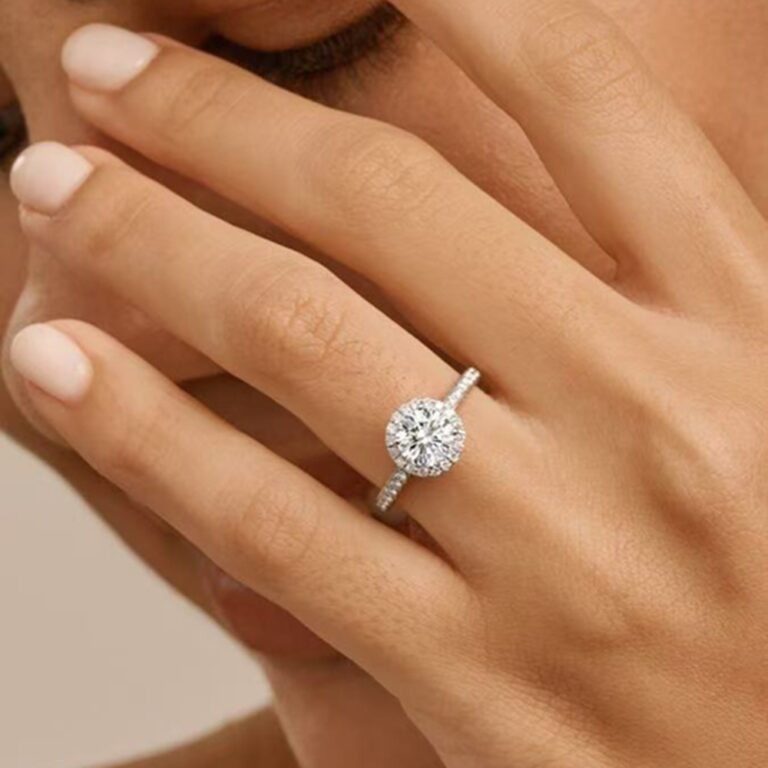 Waverly Halo Lab-Grown Diamond Engagement Ring (1ct) in 14K/18K White or Yellow Gold, Rose Gold & Platinum