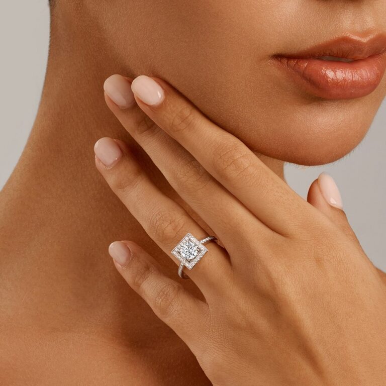 Princess Cut Halo Lab-Grown Diamond Engagement Ring in14K/18K White Gold, Yellow Gold, Rose Gold & Platinum​(1ct)