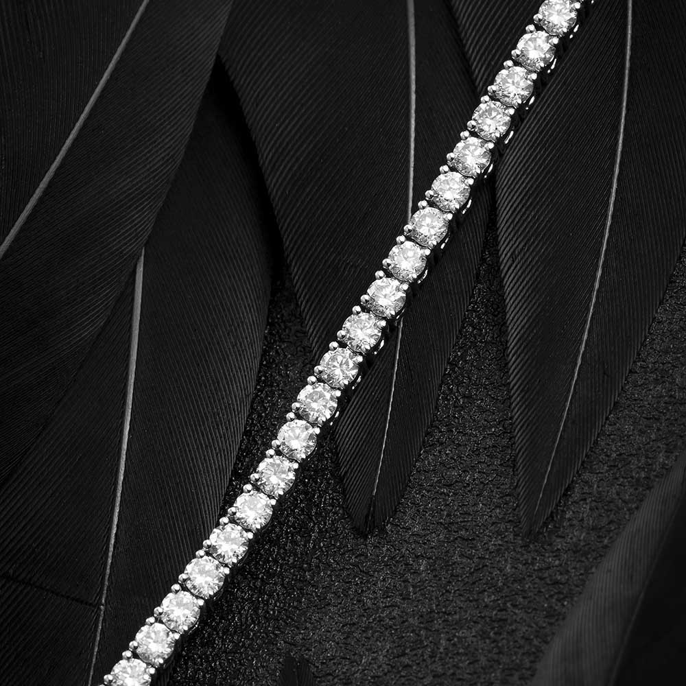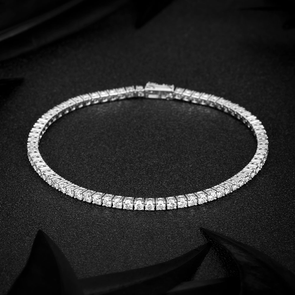 Enhance romantic evenings with this exquisite diamond line bracelet. Crafted in warm yellow gold, its sustainable lab-grown diamonds catch the light with every movement, adding elegance to special dates.