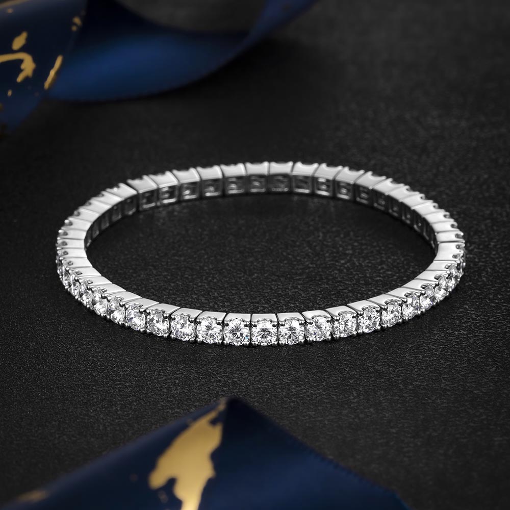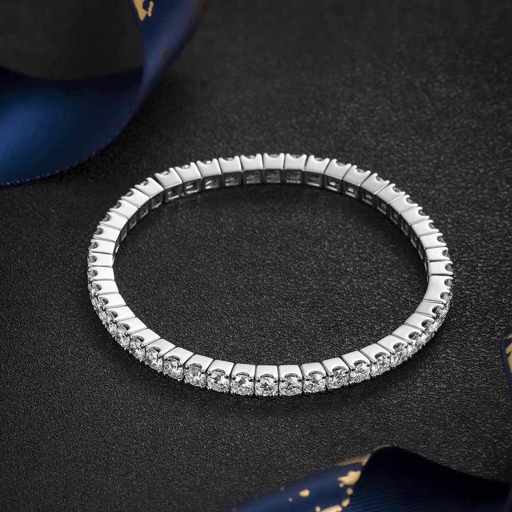 Designed with a flexible band and uniformly set round lab-grown diamonds, this bracelet combines comfort with dazzling brilliance. It??s ideal for parties and social gatherings, where its radiant sparkle enhances festive moods and celebrates special times with friends and loved ones.