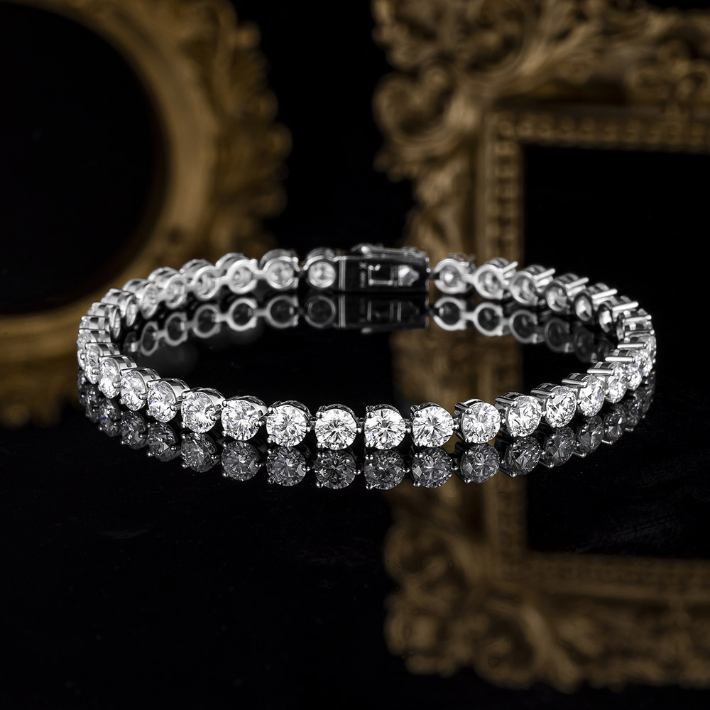 Bracelet d'amitié en or blanc/jaune 14 carats/18 carats (9 carats, poids total) avec diamants de synthèse
