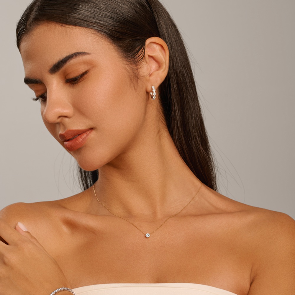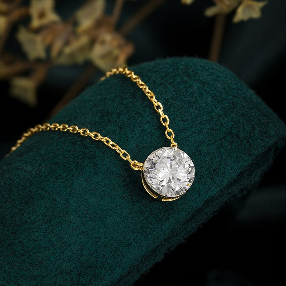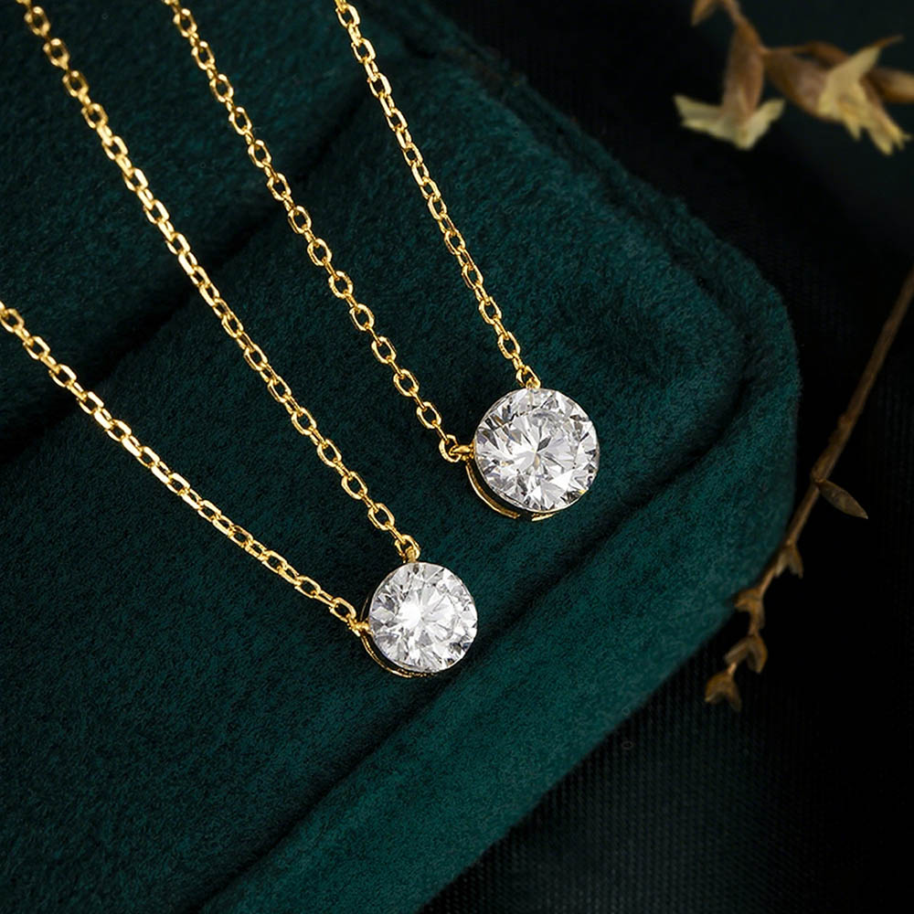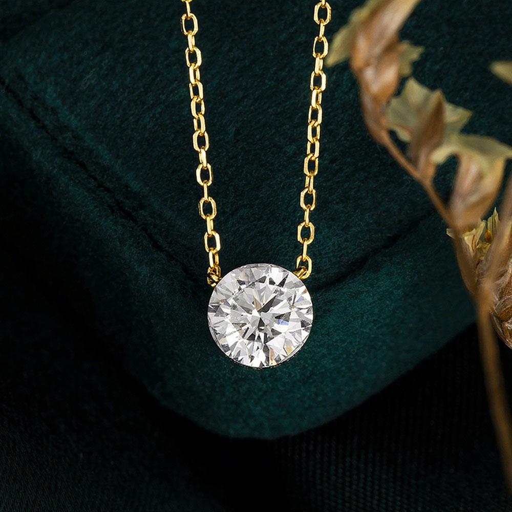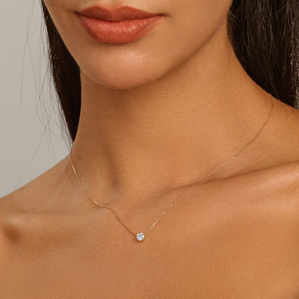 This elegant solitaire necklace features a brilliant round lab-grown diamond set in a classic setting, suspended from a delicate 14k/18k Gold chain.