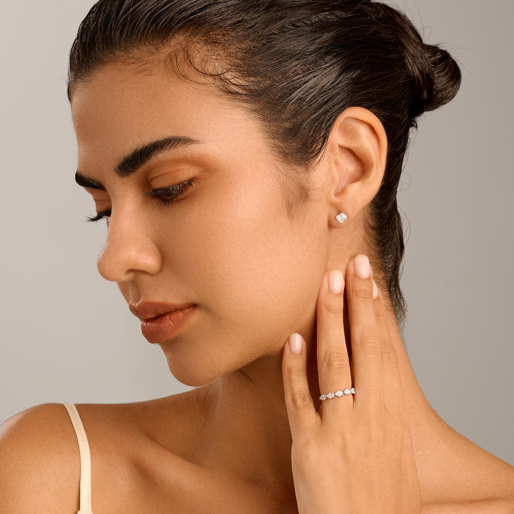 白金 プリンセスカット ラボグロウン ダイヤモンド スタッドピアス(1.0カラット)14K/18K ホワイトゴールド