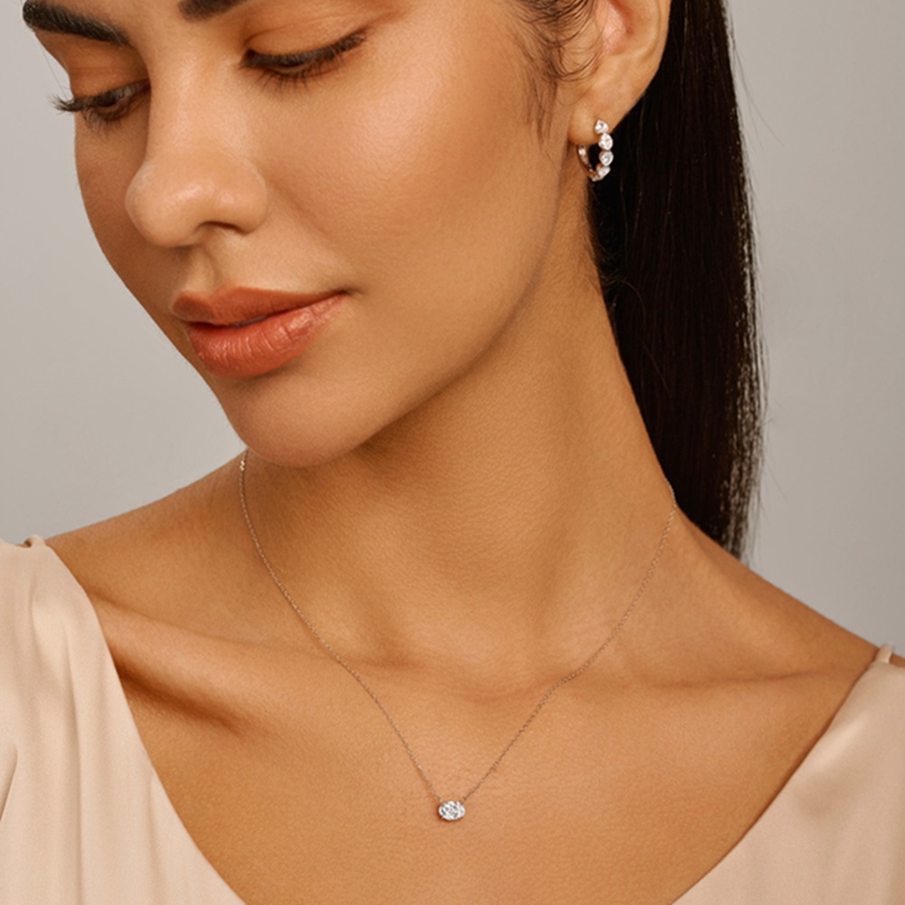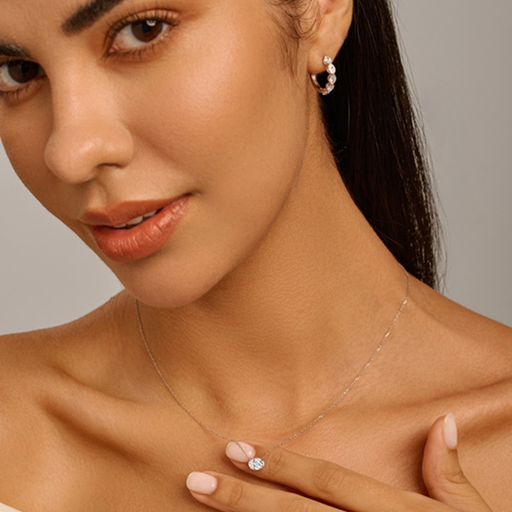This timeless solitaire pendant showcases a single, brilliant lab-created diamond, secured in a classic four-prong setting. Perfect for adding a touch of refined elegance to any outfit, from daily wear to special evenings out. A versatile piece that celebrates understated luxury and conscious creation.