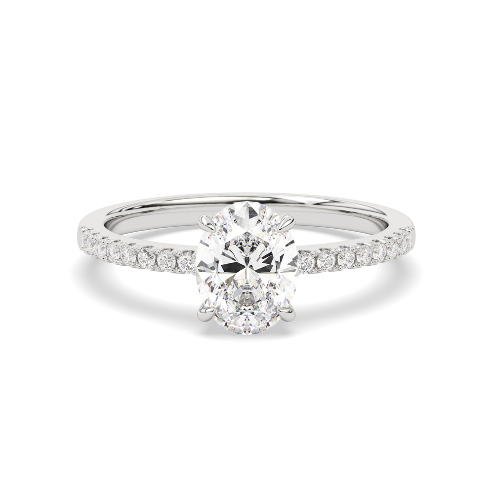 1-3carat oval lab-grown IGI certified diamond, set in an 18K white gold engagement ring