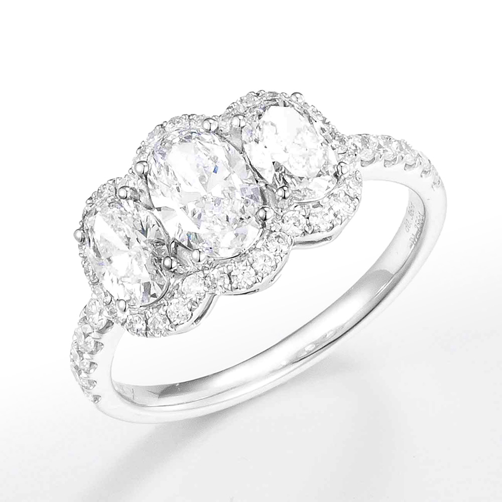 Three-Stone Oval Lab-Grown Diamond Engagement Ring (1.35 ct tw) in 14K/18K White Gold, Yellow Gold, Rose Gold or Platinum