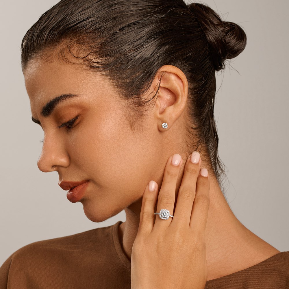 Our perfect fit engagement rings are carefully designed to sit flush against a variety of wedding rings for a seamless look with no gaps.