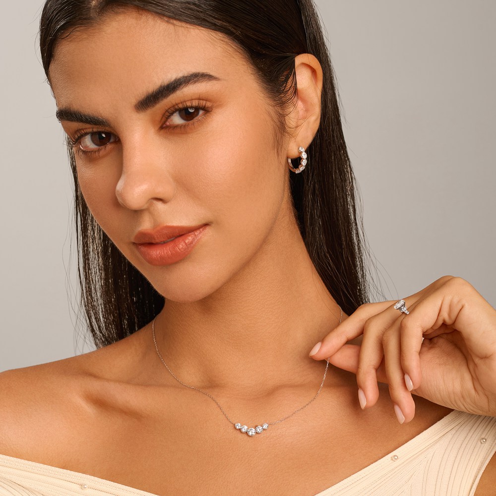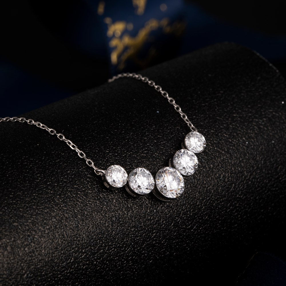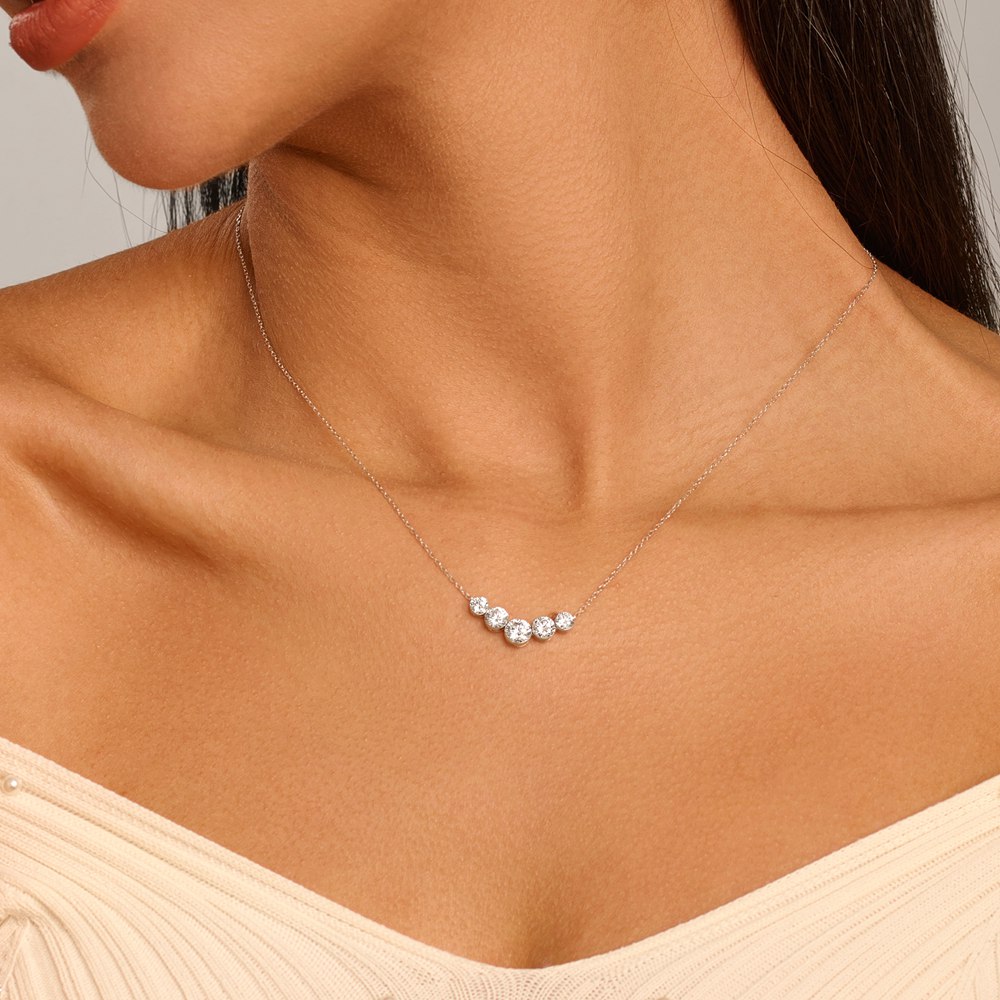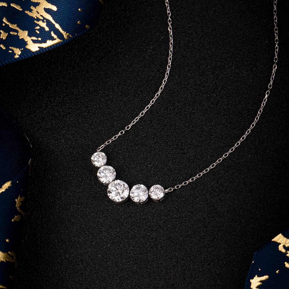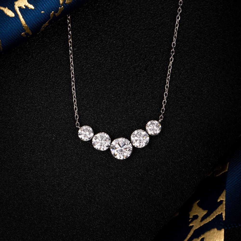 This joyful necklace features five brilliant lab-created diamonds arranged in a charming smile curve, set in polished yellow、white gold. Each precisely cut stone catches the light with every movement, creating a continuous sparkle that follows your neckline. Perfect for dating, weekend outings, or adding a touch of glamour to casual gatherings, this ethically crafted piece brings both conscious luxury and playful elegance to your everyday style.
