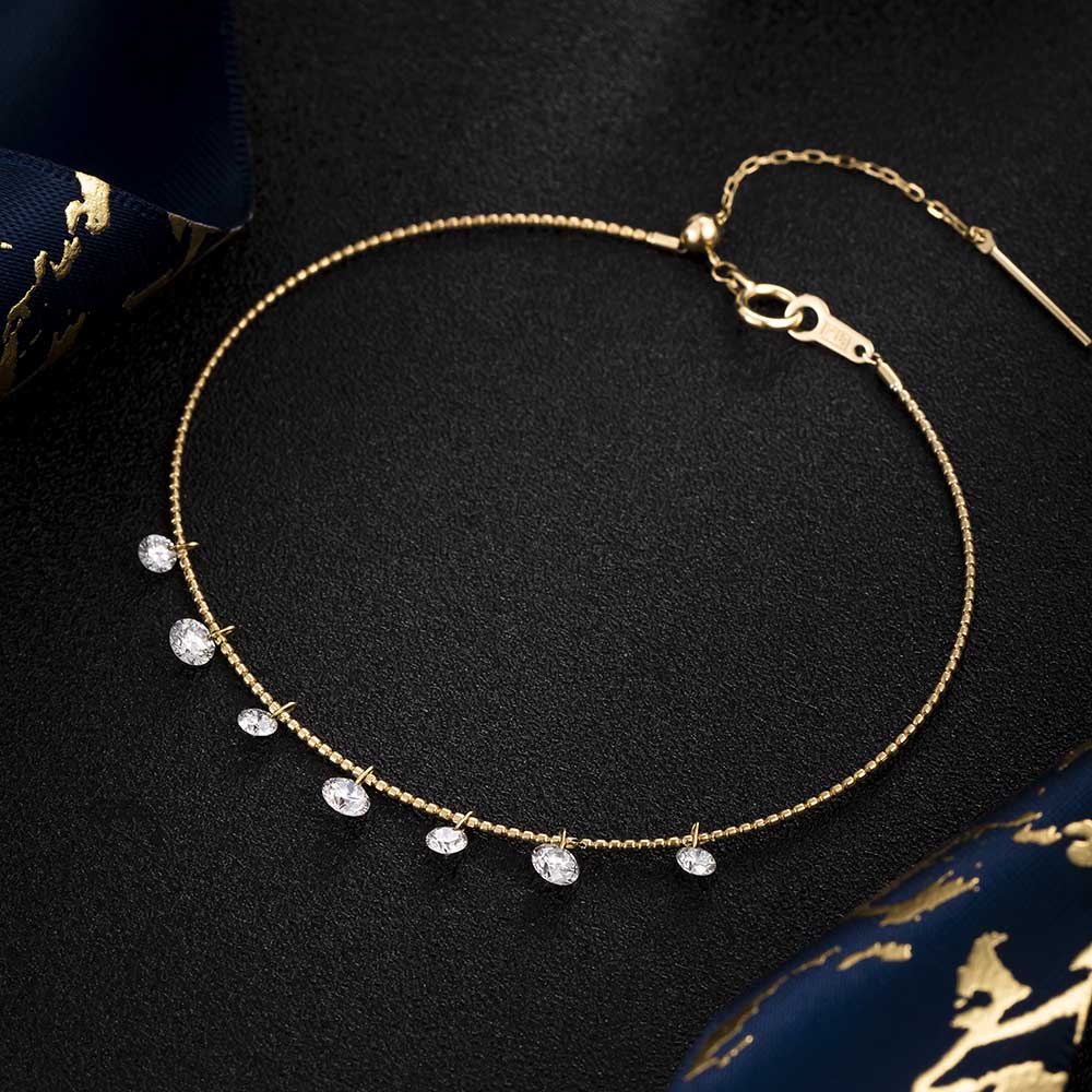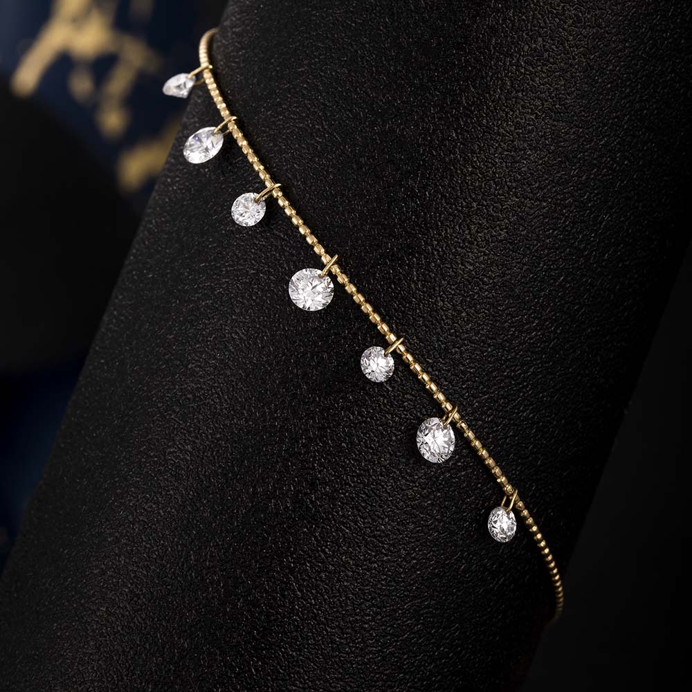 This versatile bracelet showcases a series of round brilliant lab-grown diamonds on an adjustable chain, offering effortless style for daily wear. Its continuous shine symbolizes positivity and grace, making it suitable for brunches, shopping trips, or adding a sparkle to routine moments.